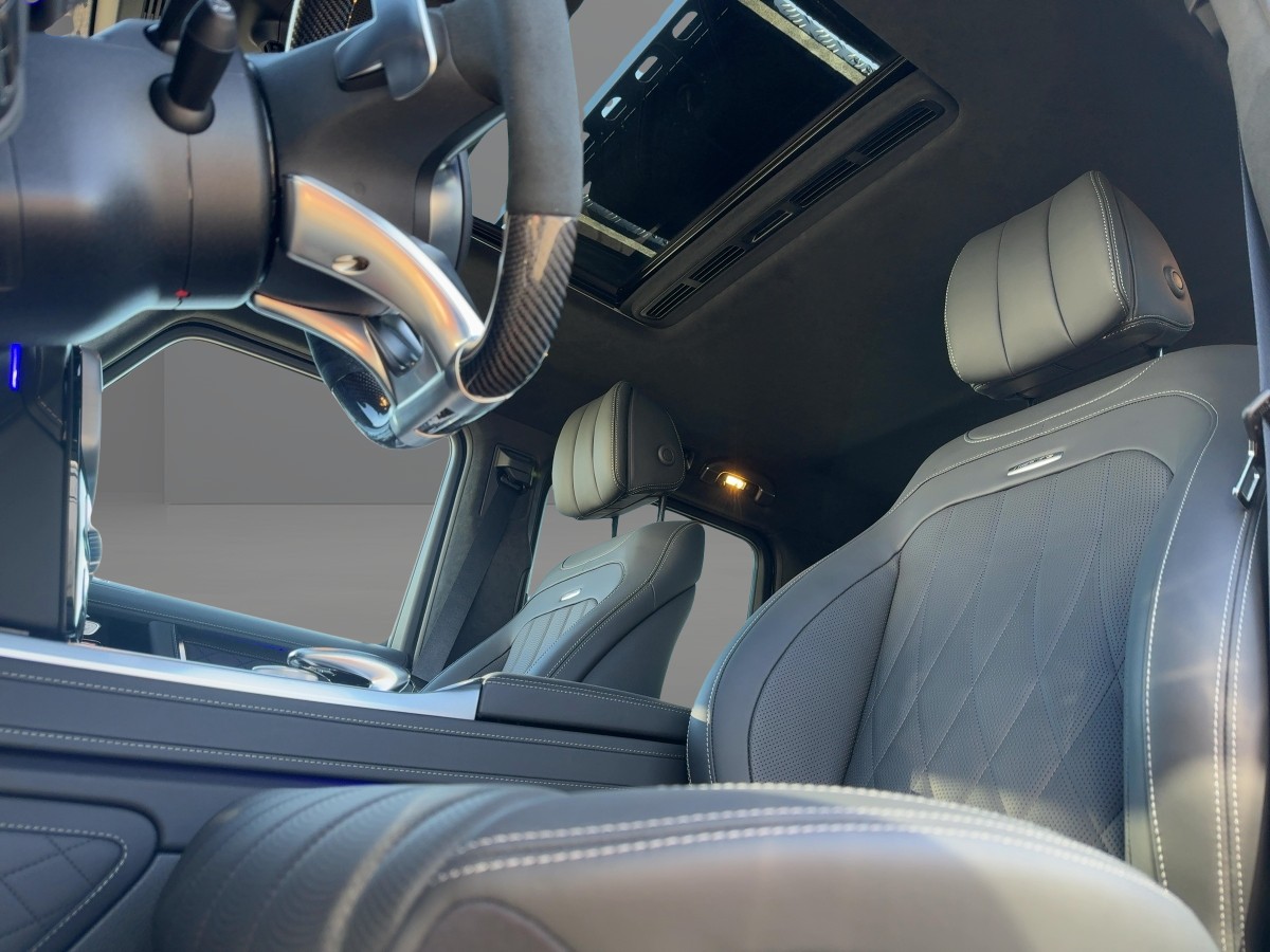 Ausstattungs-Paket: MANUFAKTUR Voll-Leder (Schiebe-/Hebedach elektrisch (Glas) - Surround-System Burmester - Multimediasystem MBUX Entertainment - Fussmatten AMG - Ionisator zur Luftreinigung - Sitzbezug / Polsterung: Leder Nappa schwarz - Ambiente-Beleuchtung für Lüfterdüsen - Sound-System mit Soundpersonalisierung - Superior Interieur - Multikontursitz-Paket Aktiv Plus - Innenhimmel Mikrofaser - Haltegriffe Innenhimmel Leder)